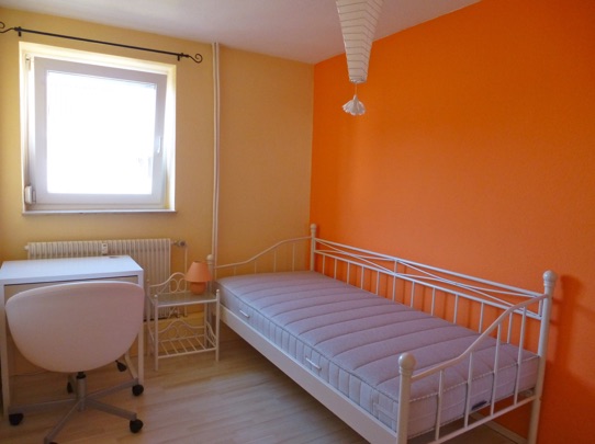 Gemütlichkeit und warme Farben zeichnen dieses kleine, aber feine Schlafzimmer aus, das zudem durch seine Funktionalität besticht. Das Bett eignet sich auch als Sofa, am Schreibtisch haben Sie - wie überall in der Wohnung - kostenlosen Internet-Zugang per W-Lan!